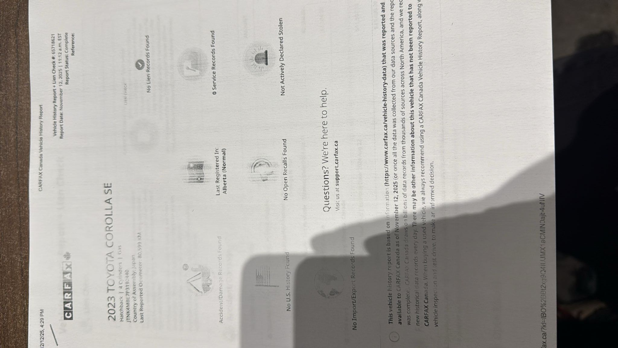 Low km (108,531 km )